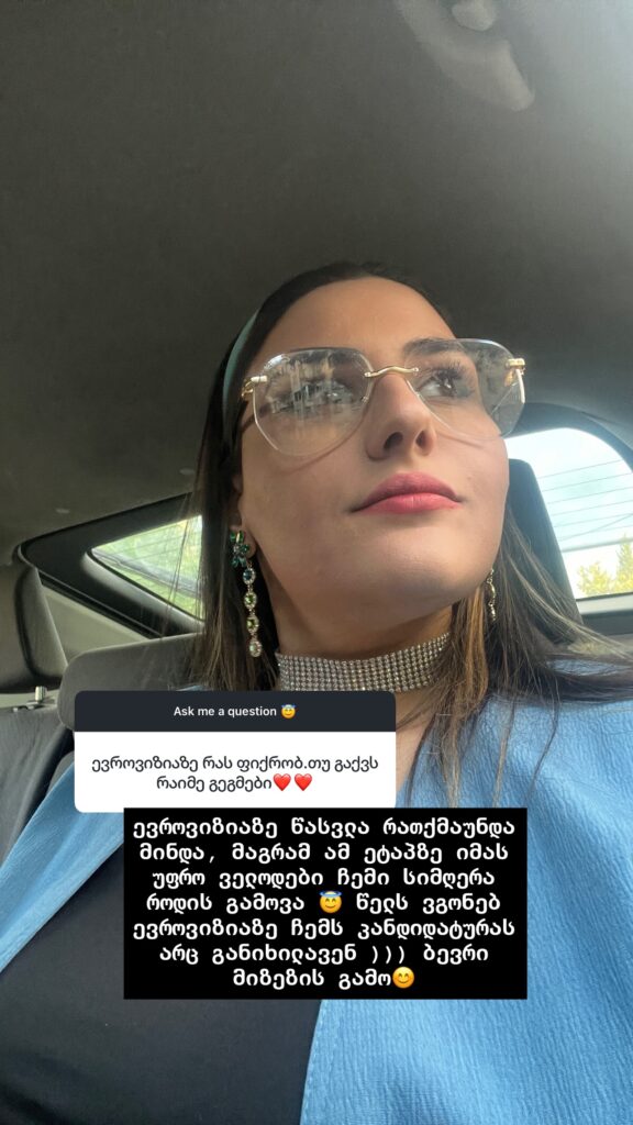 „ევროვიზიაზე გასვლაზე რას ფიქრობ, გაქვს რაიმე გეგმები?“.