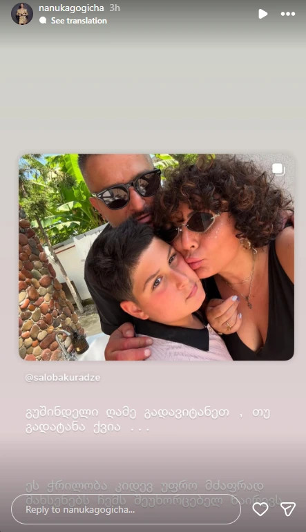 „გუშინდელი ღამე გადავიტანეთ, თუ გადატანა ჰქვია. ეს ჭრილობა კიდევ უფრო მძაფრად მახსენებს ჩემს შეუხორცებელ ნაიარევს“, – წერს ნანუკა გოგიჩაიშვილი.